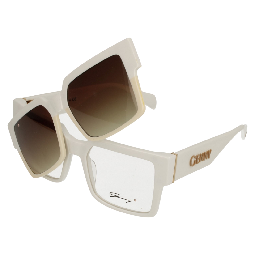 Podsumowanie: Oprawki Genny z nakładką Clip-On to połączenie modnego designu i funkcjonalności. Biały kolor oprawek i brązowe soczewki nakładki tworzą stylowe połączenie. Jest to idealne rozwiązanie dla osób noszących okulary korekcyjne, które cenią sobie wygodę i chcą mieć okulary przeciwsłoneczne zawsze pod ręką.