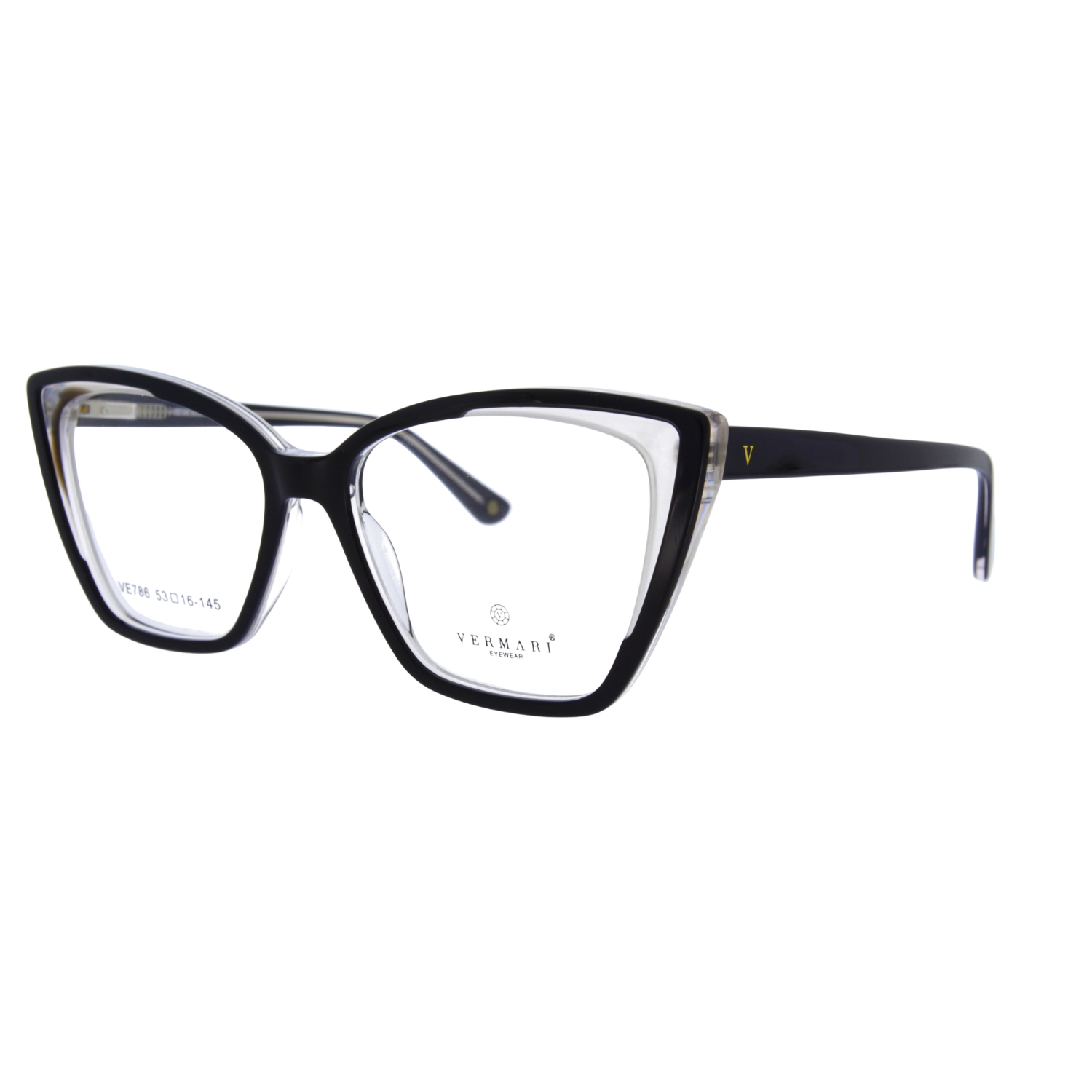 Kształt oprawek VERMARI VE786 C1 to nowoczesna interpretacja fasonu cat-eye. Subtelnie uniesiona górna linia frontu pełni funkcję estetyczną – działa jak optyczny lifting, unosząc kąciki oczu i nadając twarzy promienny wygląd. Dynamiczna, lekko geometryczna linia sprawia, że model VERMARI VE786 C1 wygląda świeżo i niezwykle współcześnie.