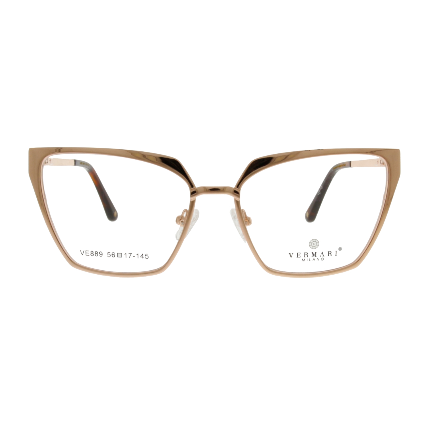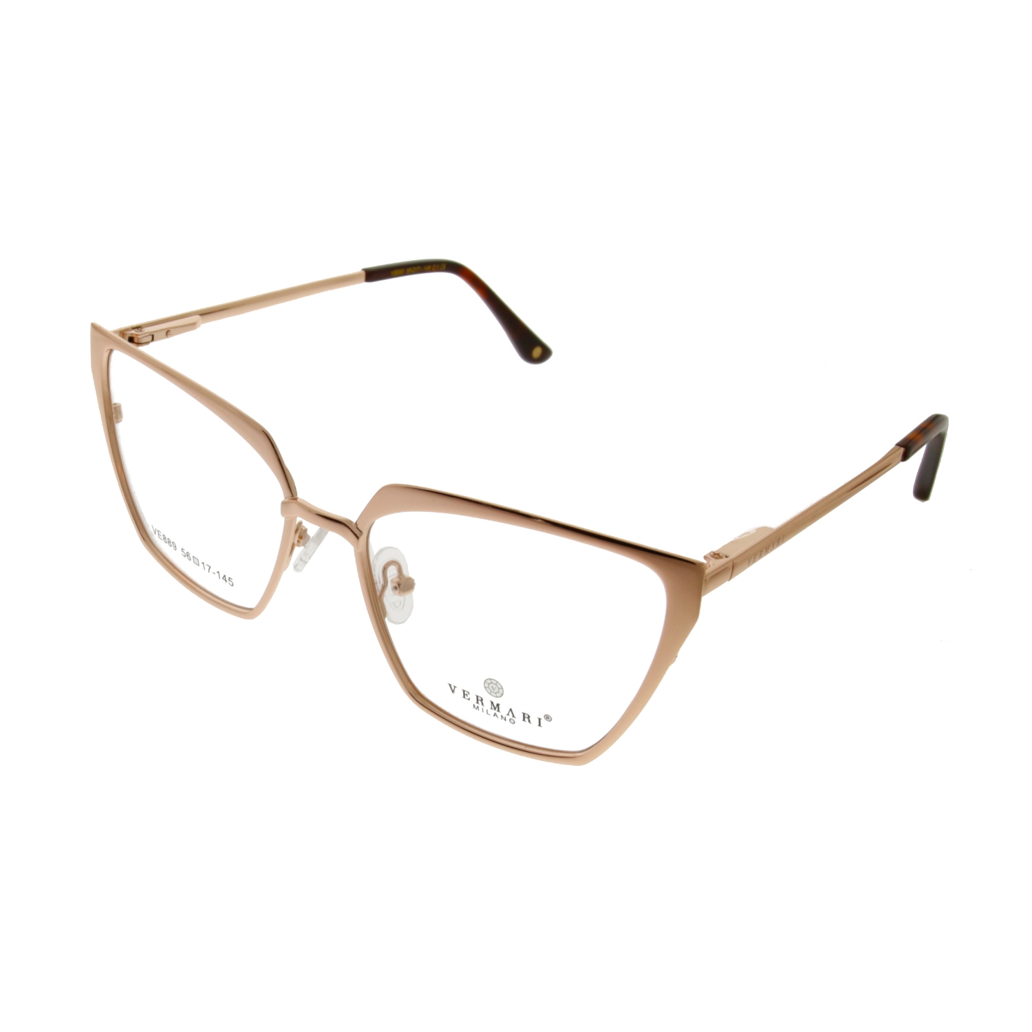 Kolorystyka modelu VERMARI VE889 C1 to szlachetny odcień różowego złota (rose gold). Jest to barwa niezwykle uniwersalna – w modelu VERMARI VE889 C1 idealnie współgra ona zarówno z chłodną, jak i ciepłą karnacją, odbijając światło i dodając cerze blasku. Damska oprawa okularowa VERMARI VE889 C1 to wybór, który nie dominuje twarzy, ale stanowi dla niej luksusową ramę.